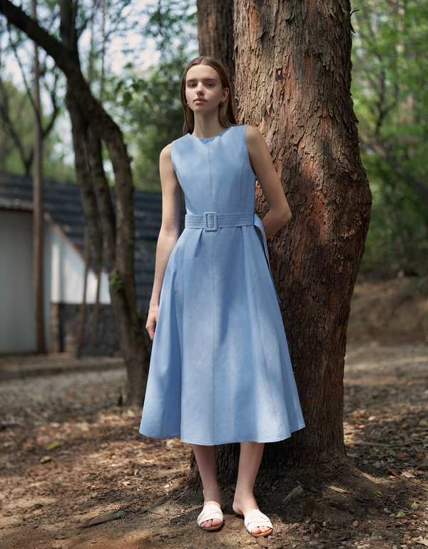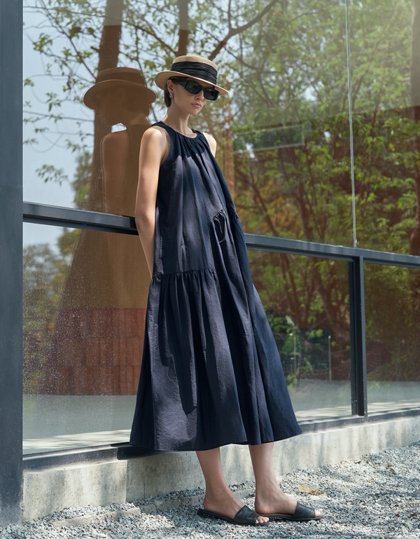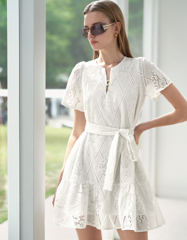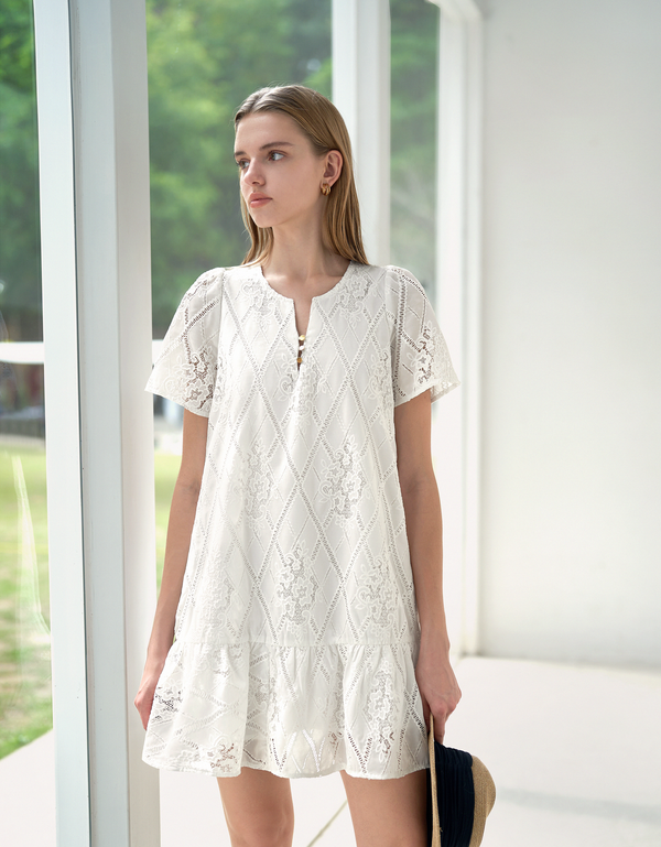 Two-tone Cutwork Embroidery Pleated Hem Dress