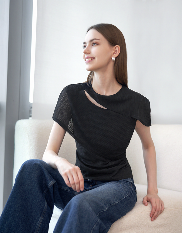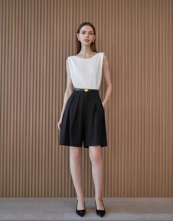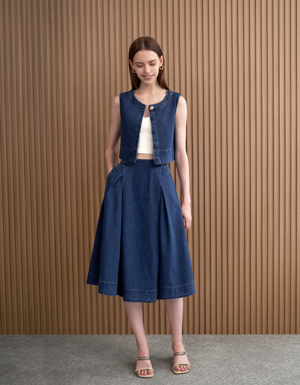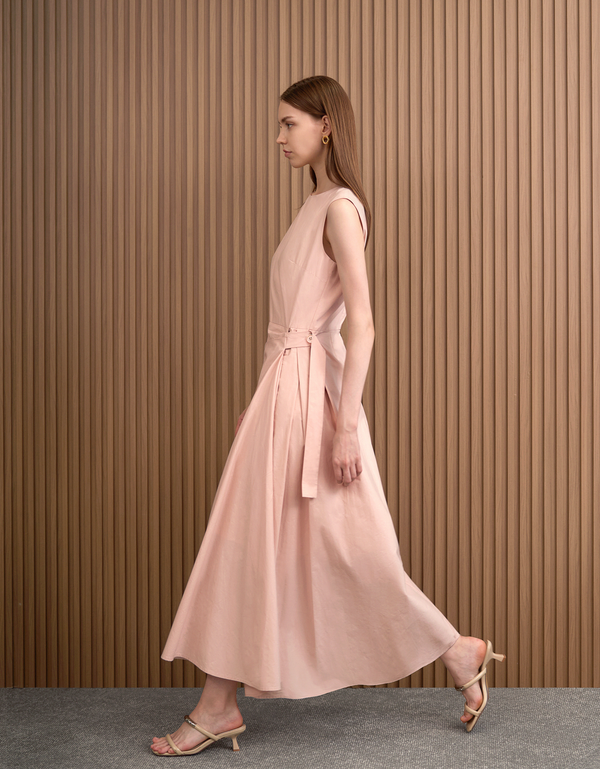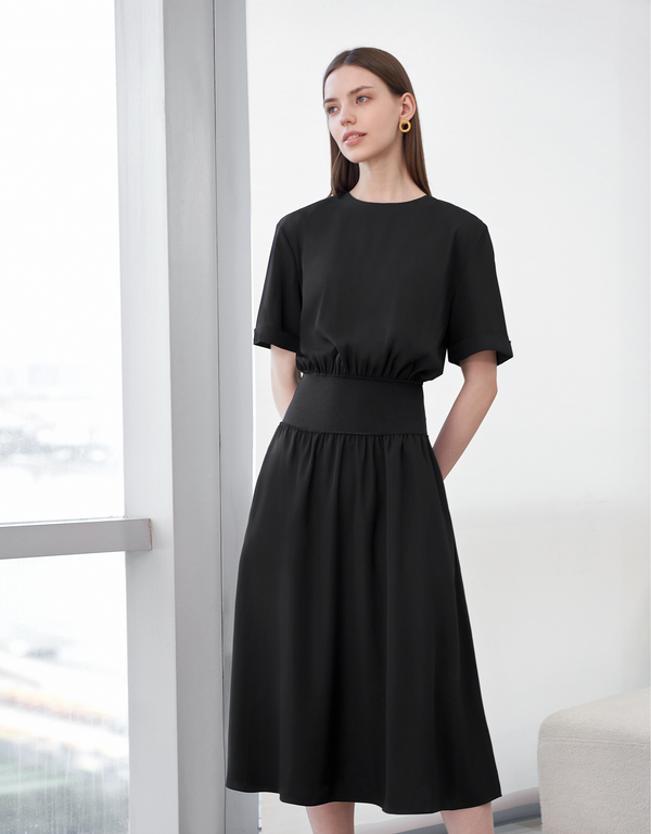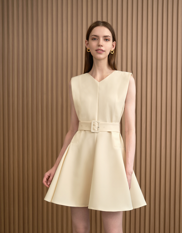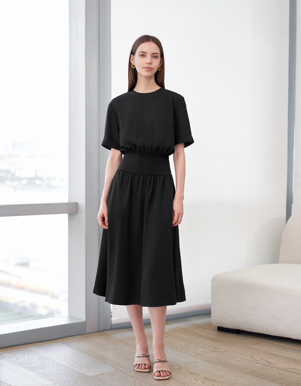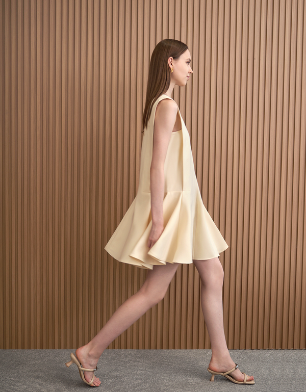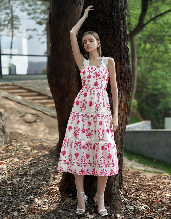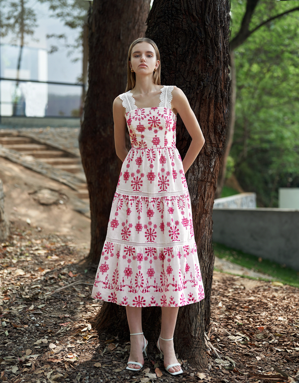 Two-tone Cutwork Embroidery Pleated Hem Dress