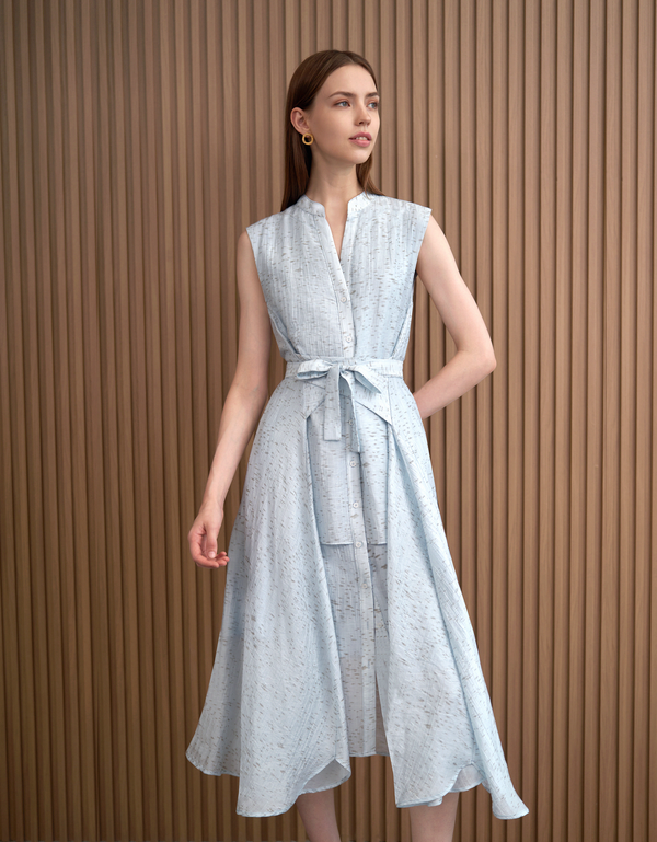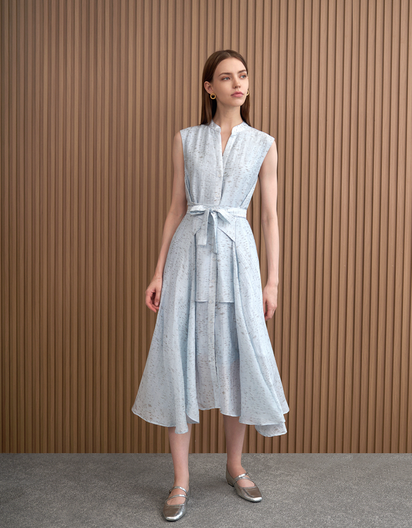 Ruffled Hem Jacquard Art Print Sleeveless Dress