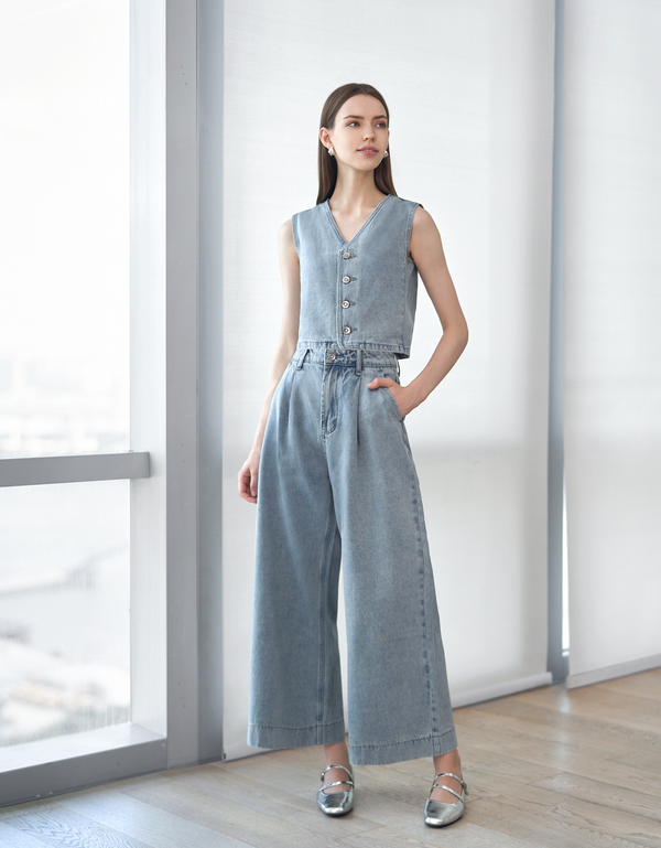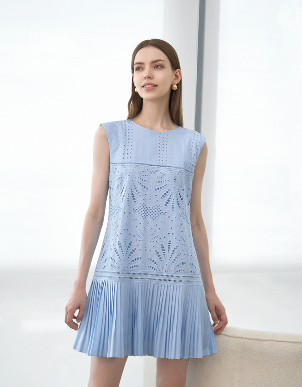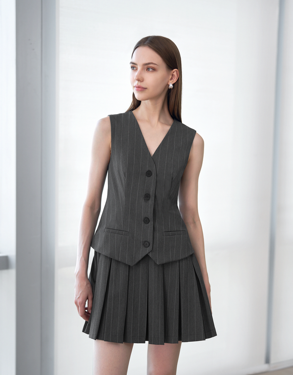 Faux Two-piece Pleated Skirt Vest Style Dress