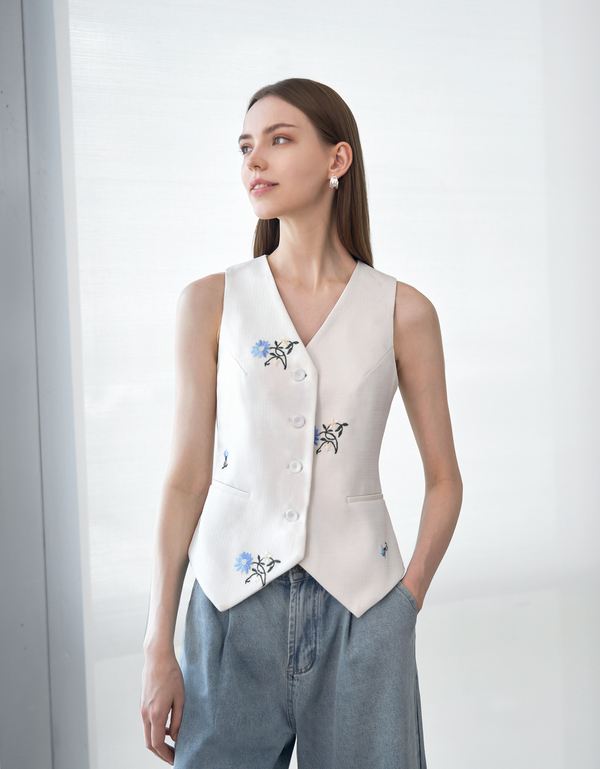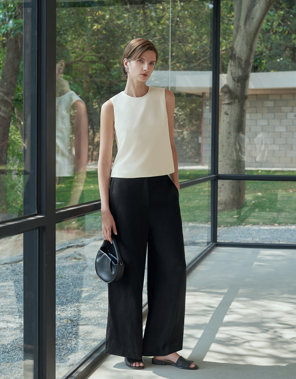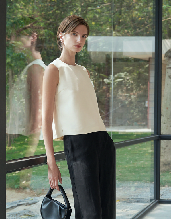 Contrast Trims Flared Hem Sleeveless Jacquard Top