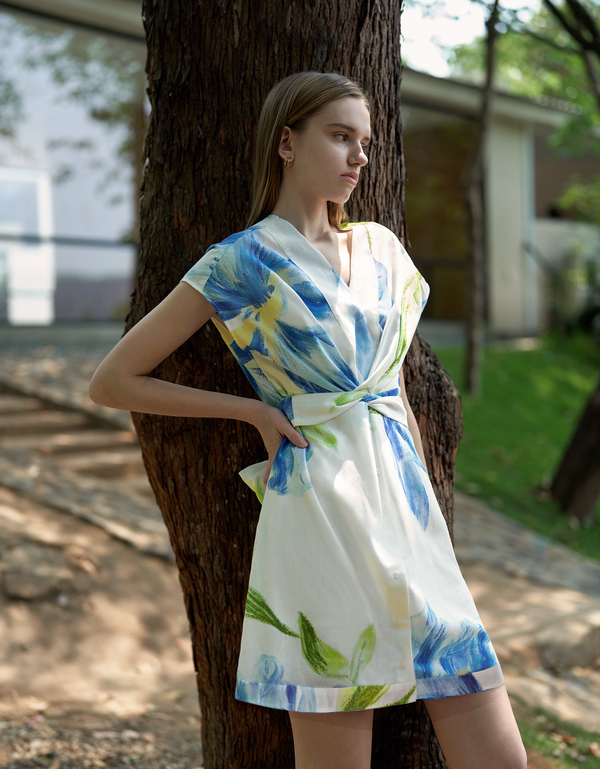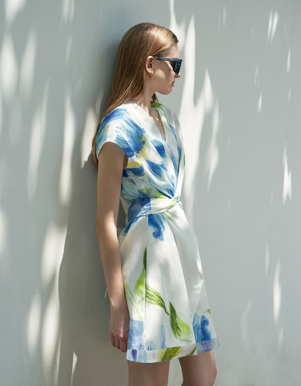 Floral Jacquard Tiered Skirt Sleeveless Dress
