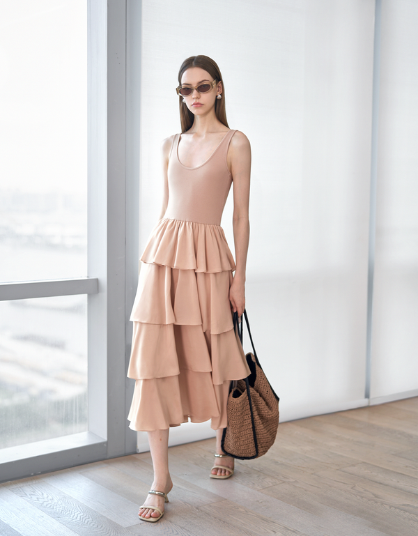 Knit Top Pleated Skirt Midi Dress