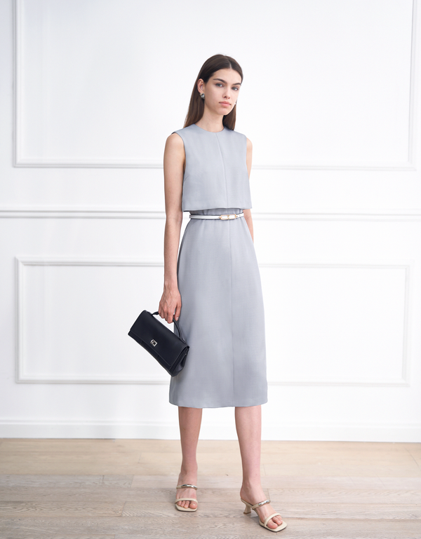 V-neck Overlap Sleeveless Midi Dress