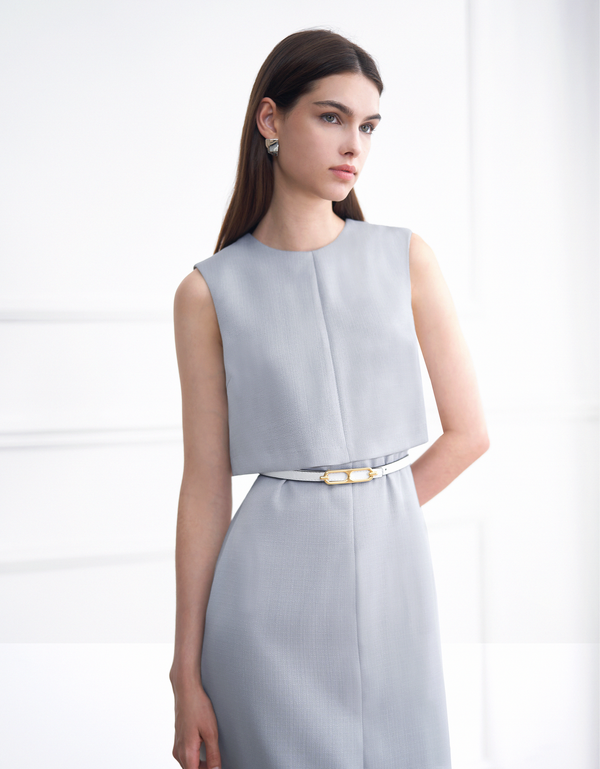 Waist Tie Sleeveless Midi Shirt Dress