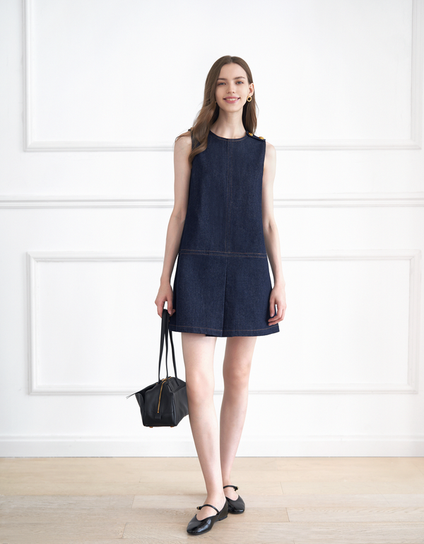 Contrast Pleated Panel Sleeveless Dress