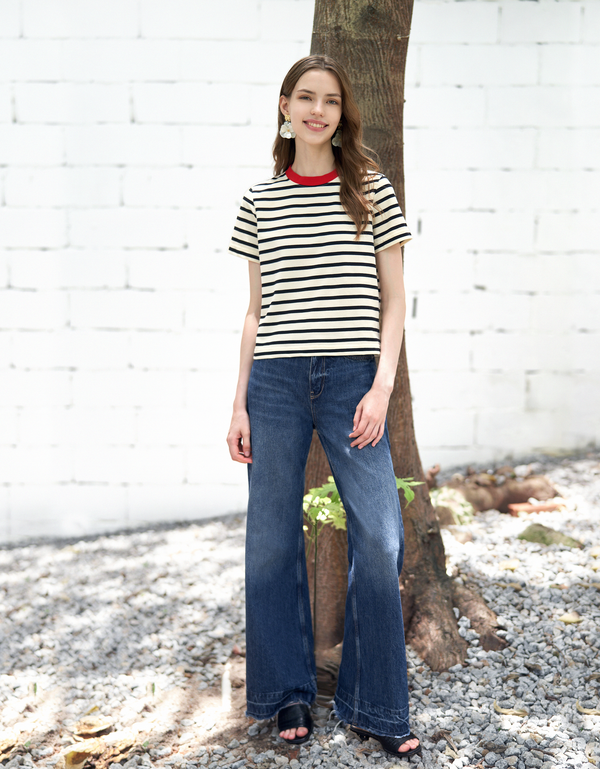 クルーネック半袖トップス