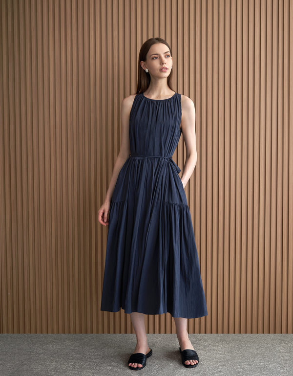 Pleated Skirt Colorblock Maxi Dress