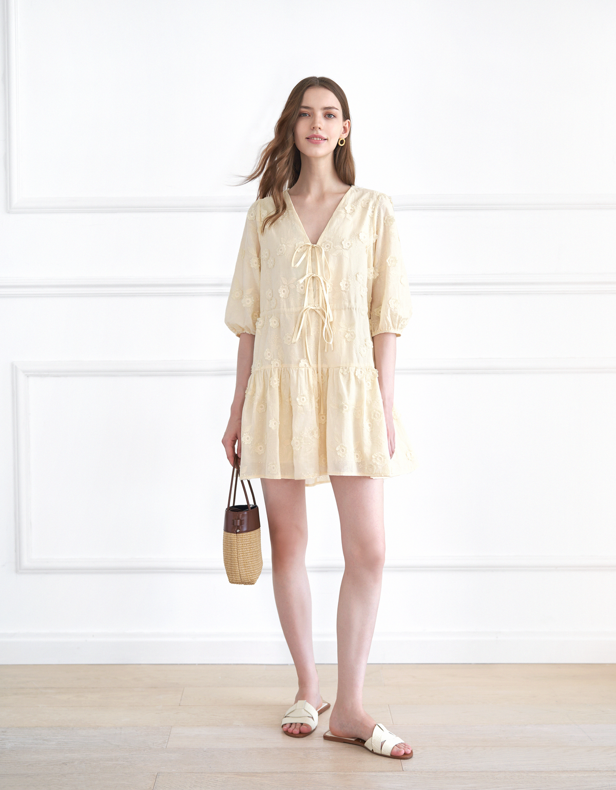 - Breathable cotton-based three-dimensional embroidered fabric- Reversible design that can be worn either front or back for two distinct looks in one