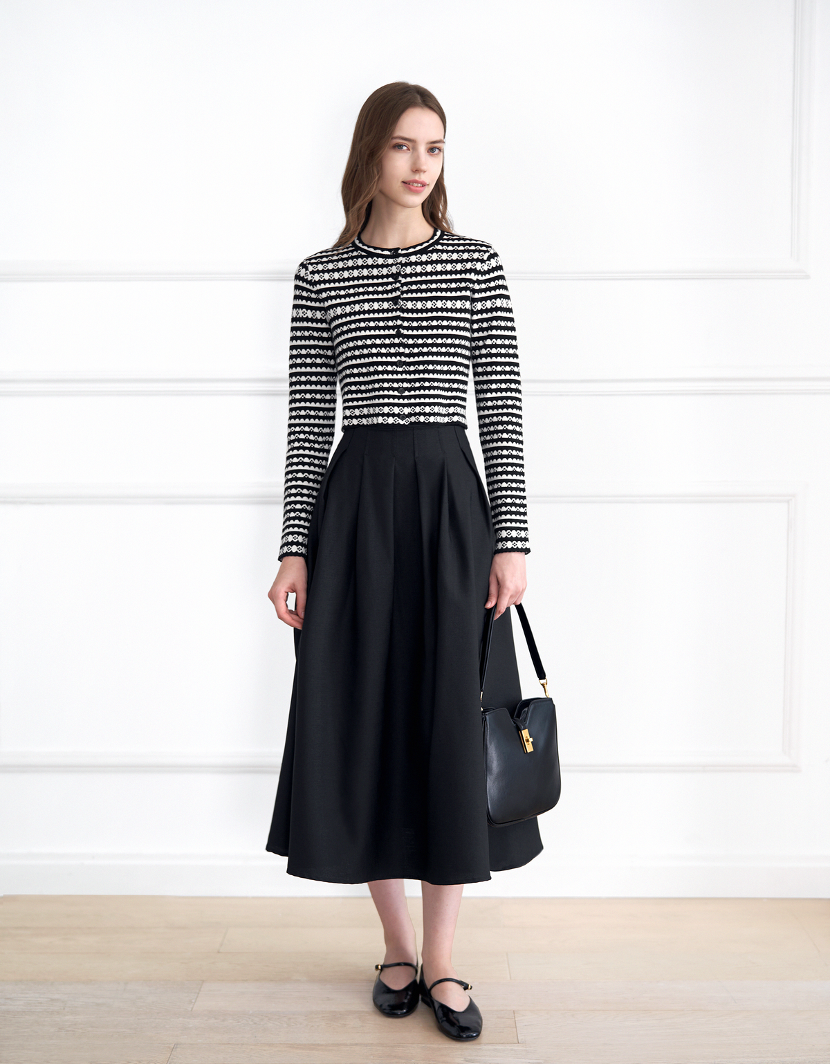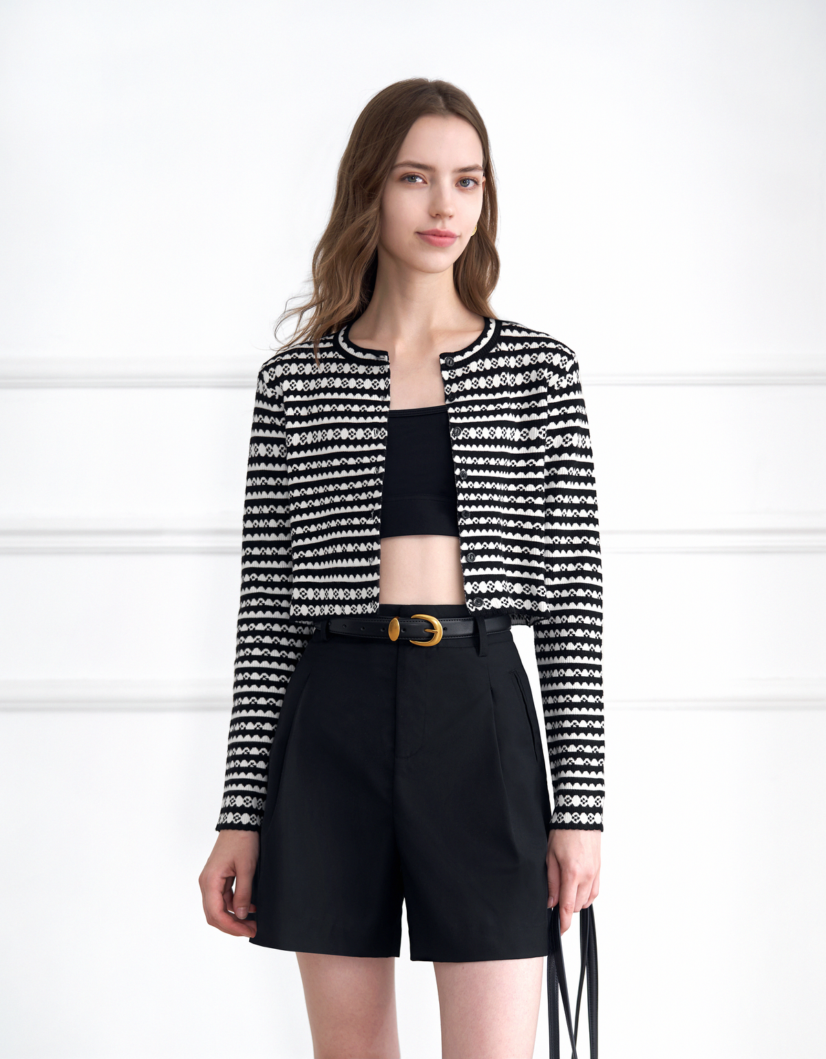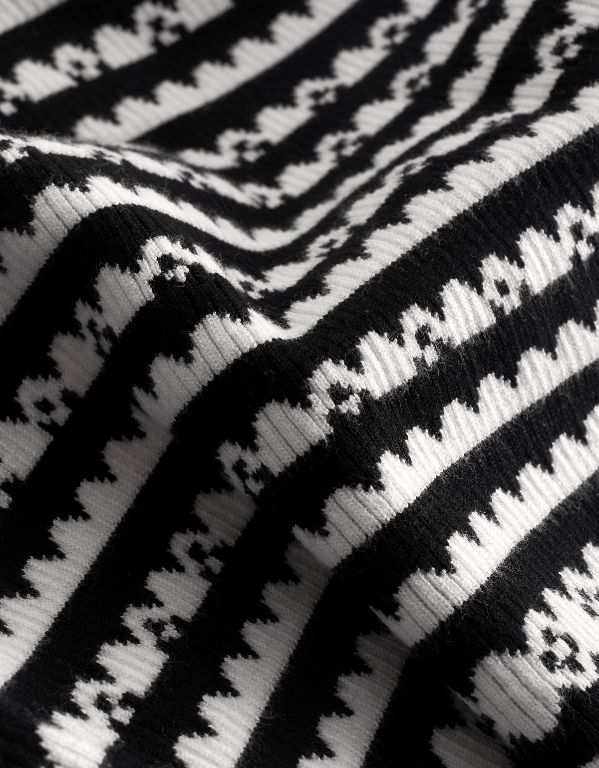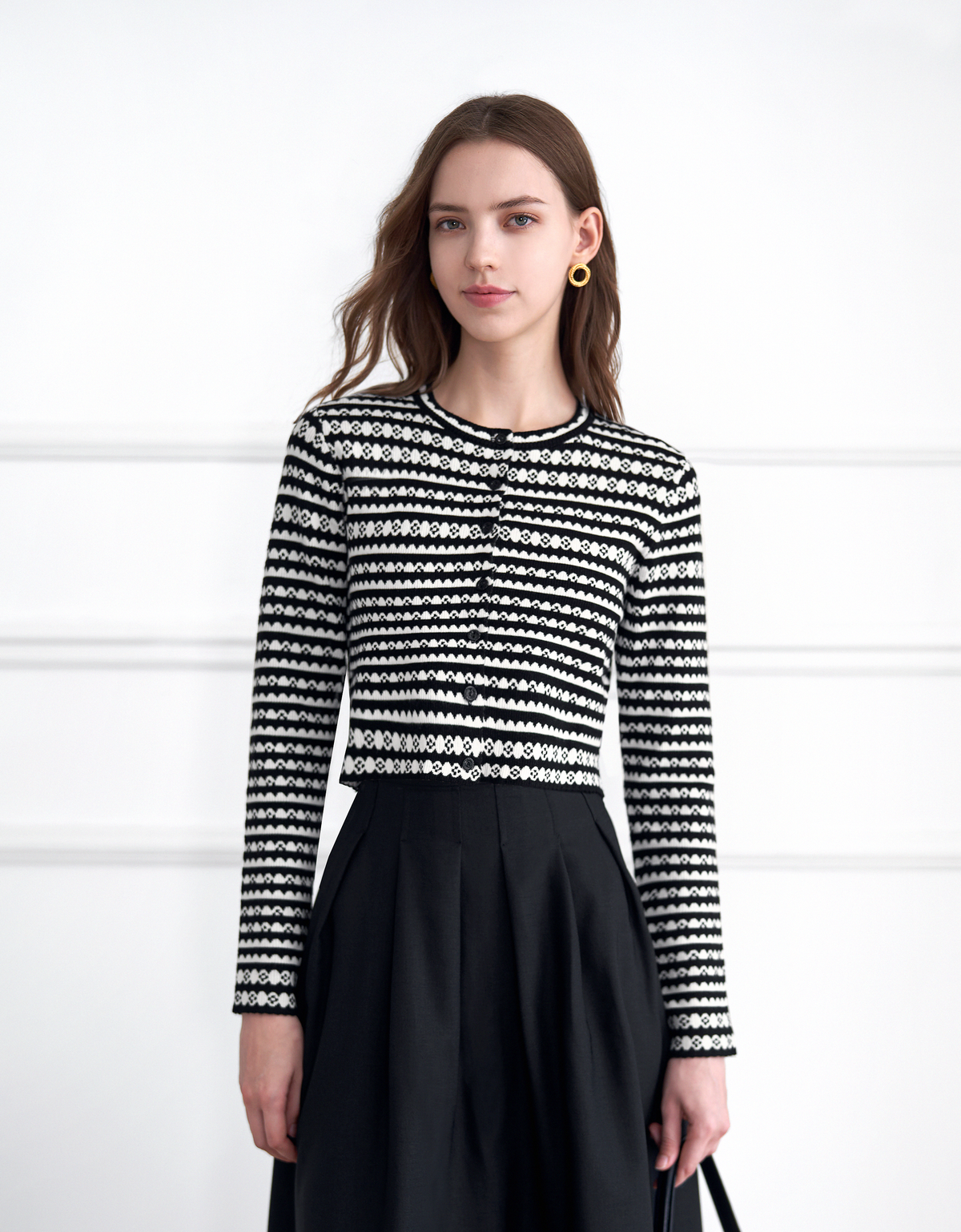 - Eye-catching ripple trim and bold striped pattern give this cardigan a playful, standout look
