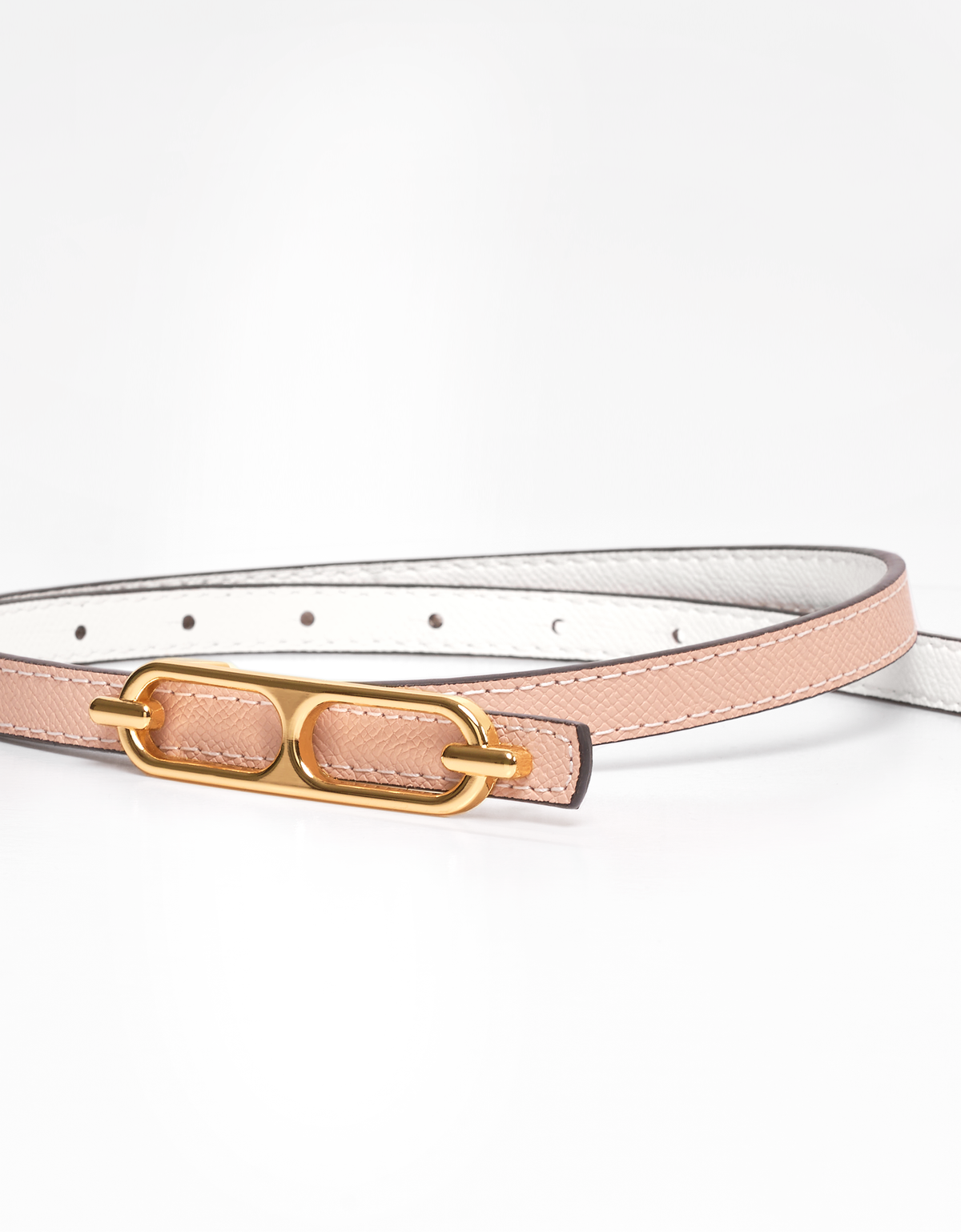 - Two-tone reversible design- Gold metal buckle