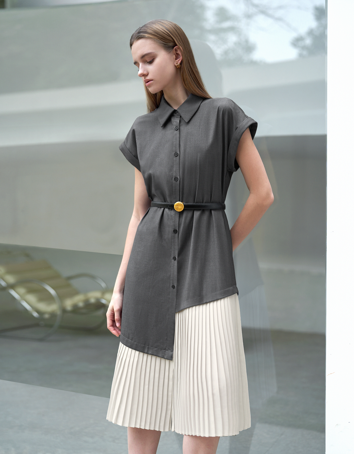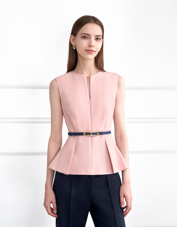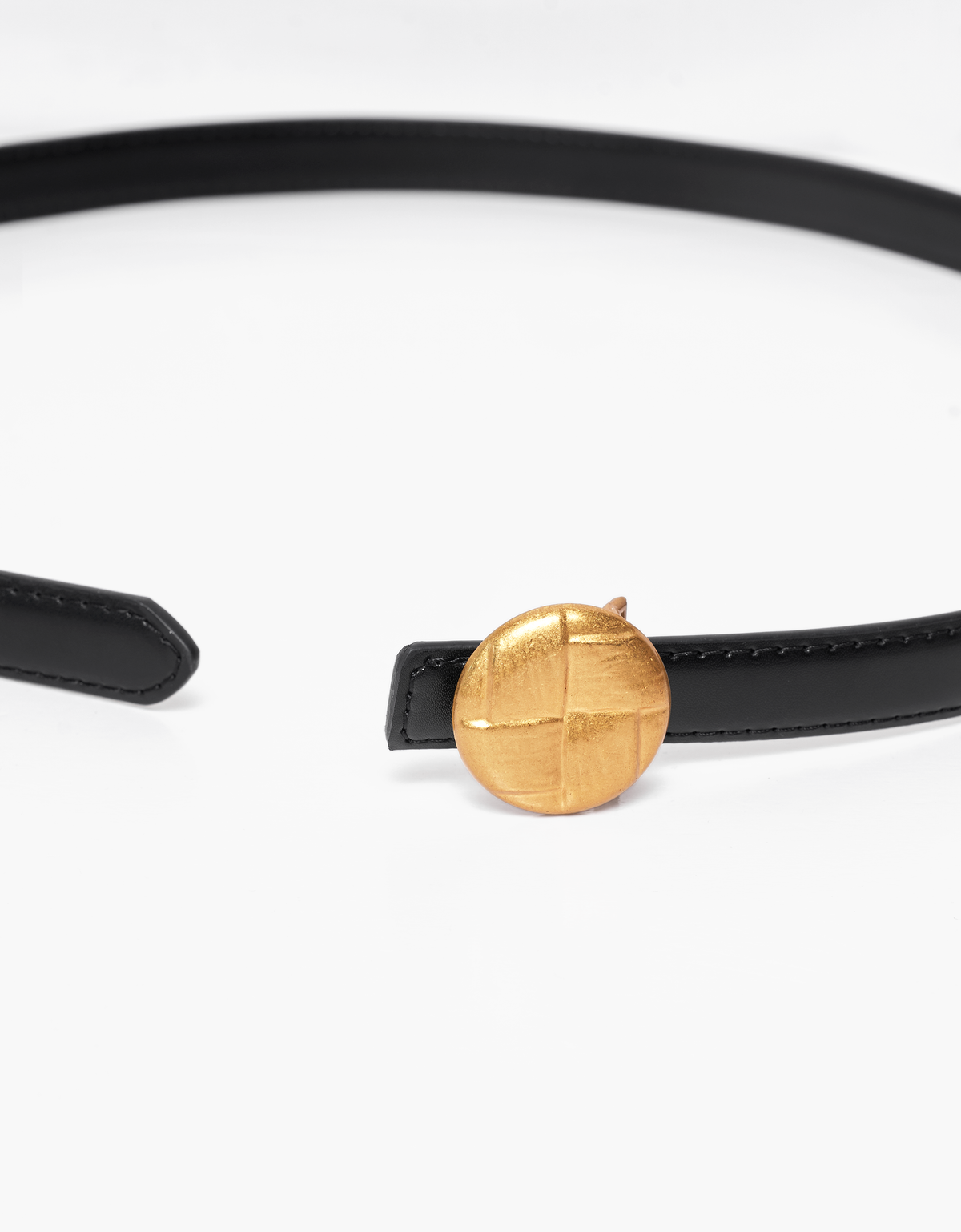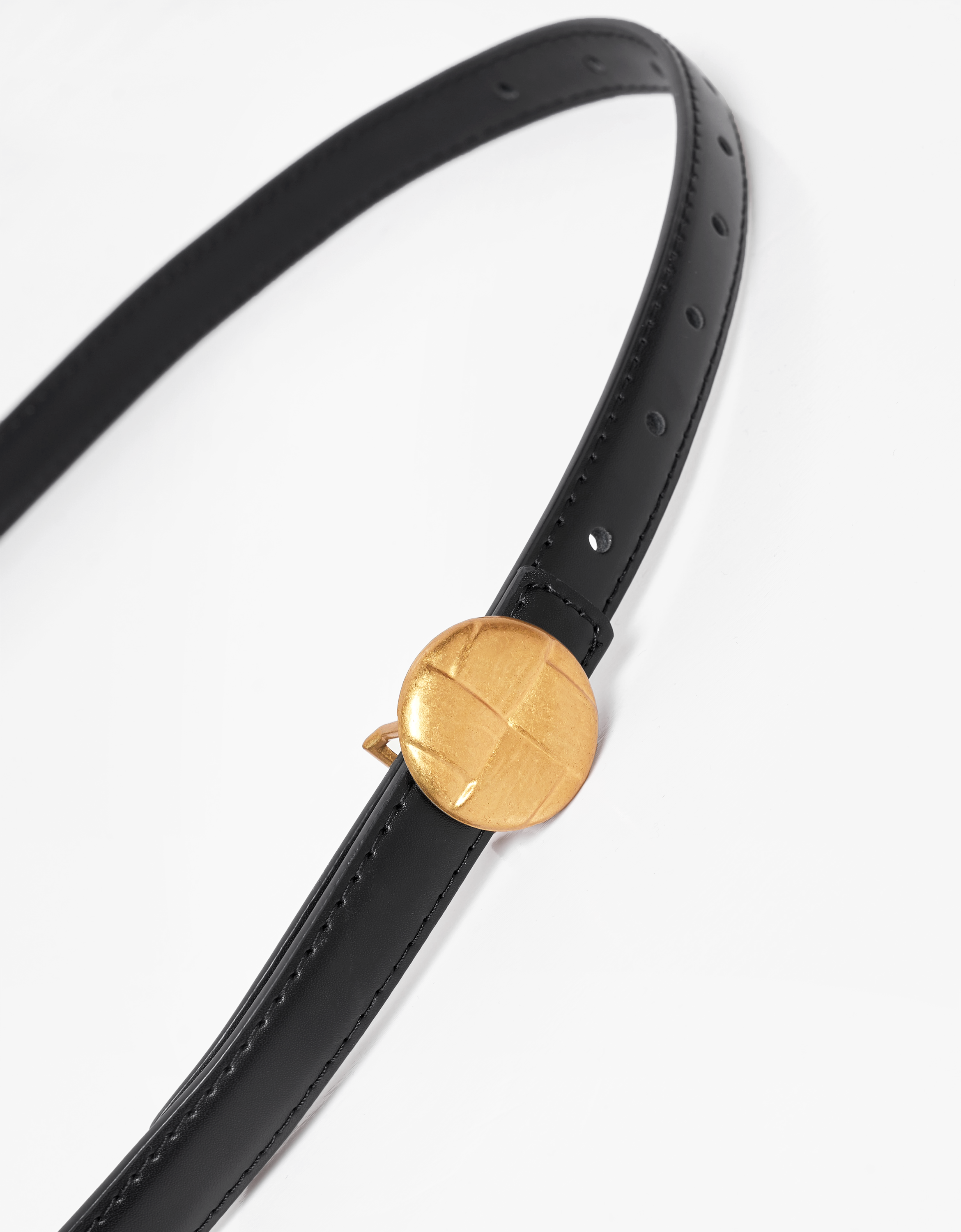 - Thin leather belt- Round metal buckle