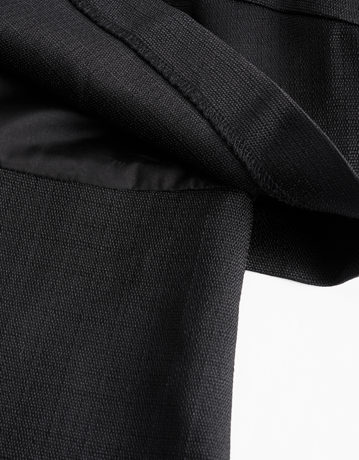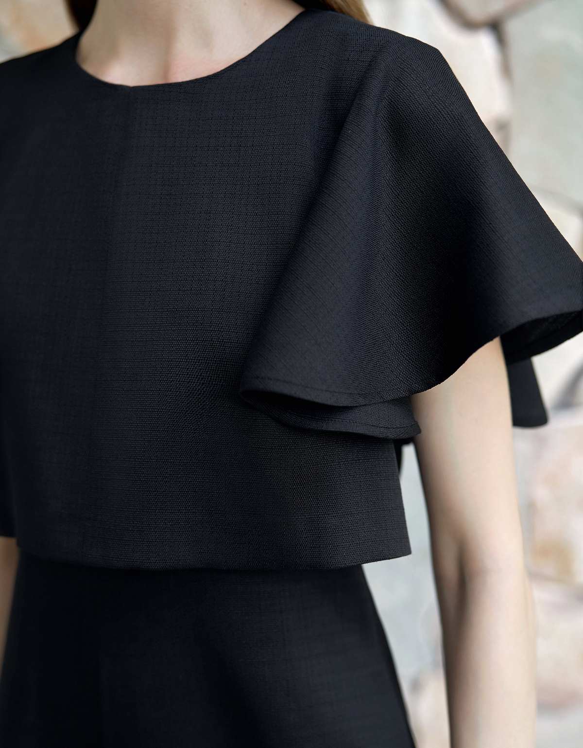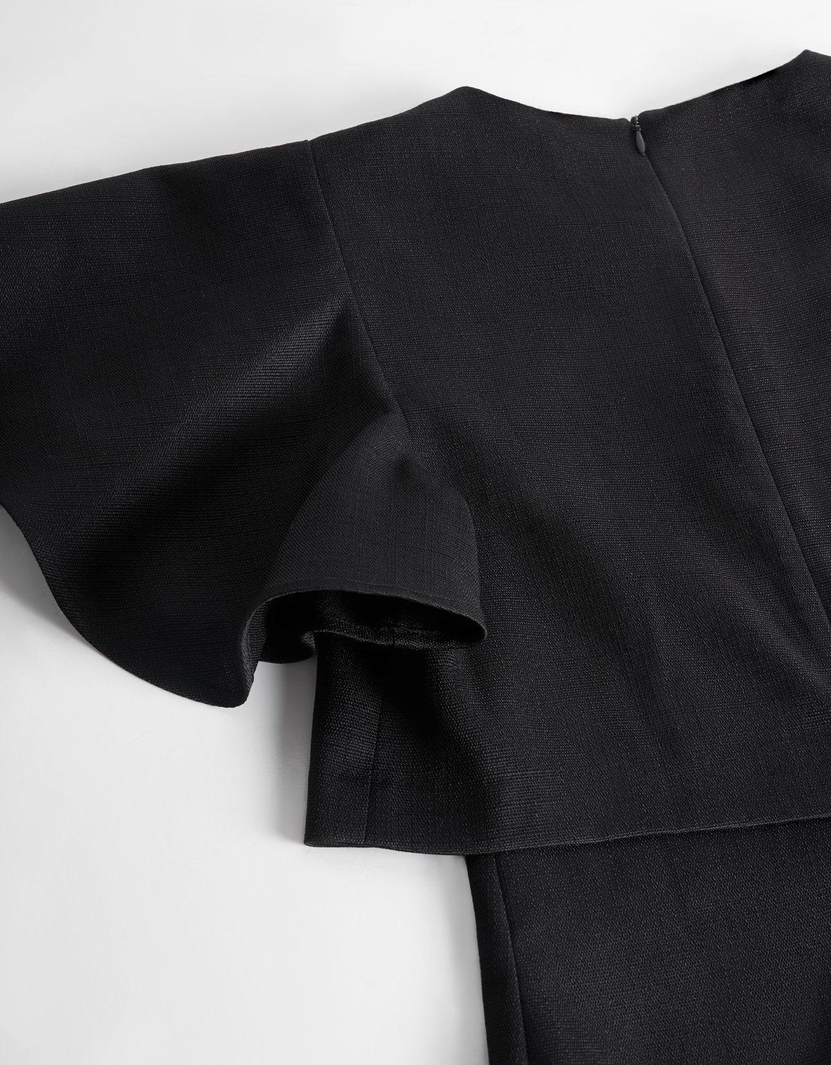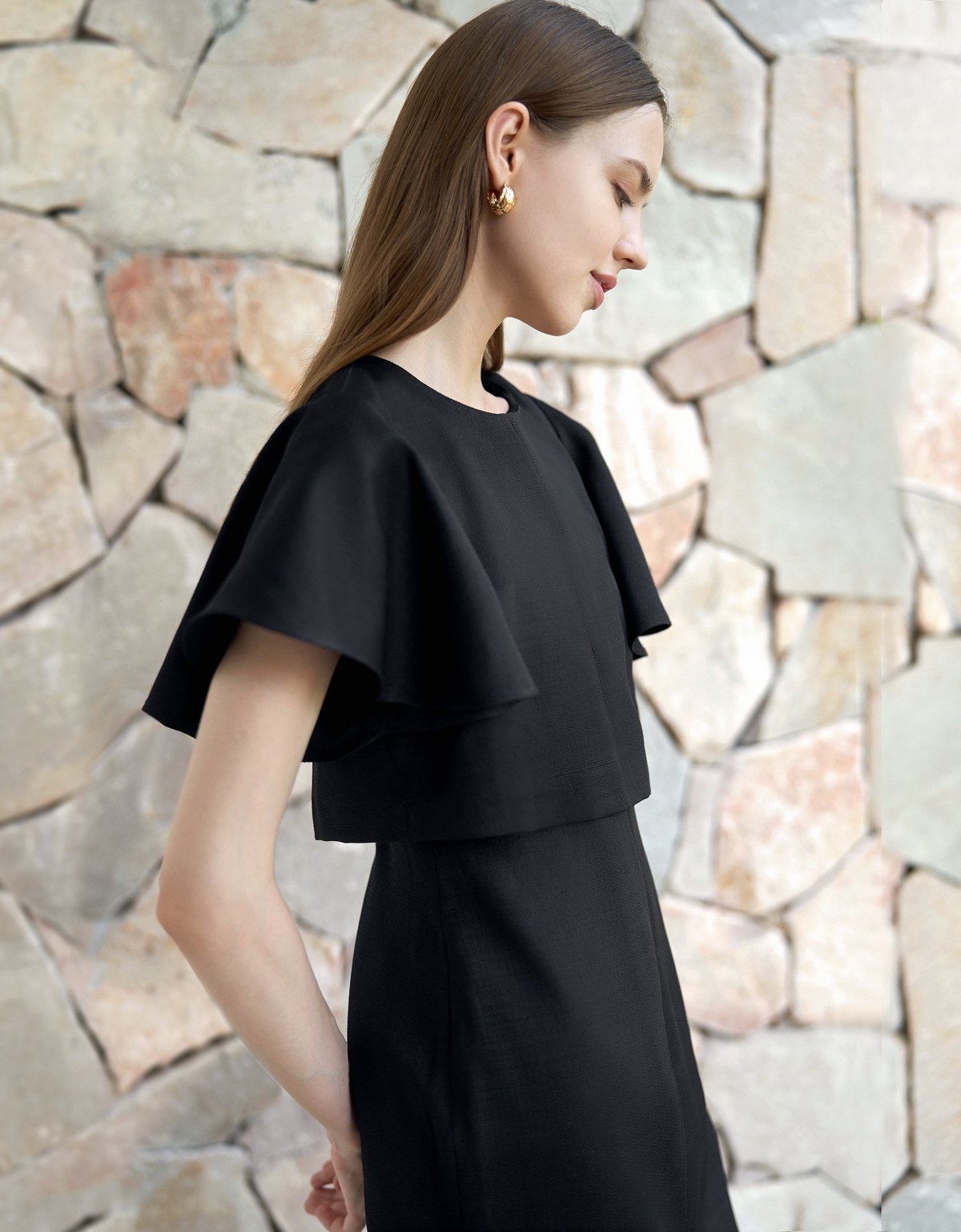 - Featuring a sleek midi silhouette designed to elongate the frame, with a layered bodice that creates the illusion of a refined two-piece set- A discreet center-back slit adds comfort and mobility