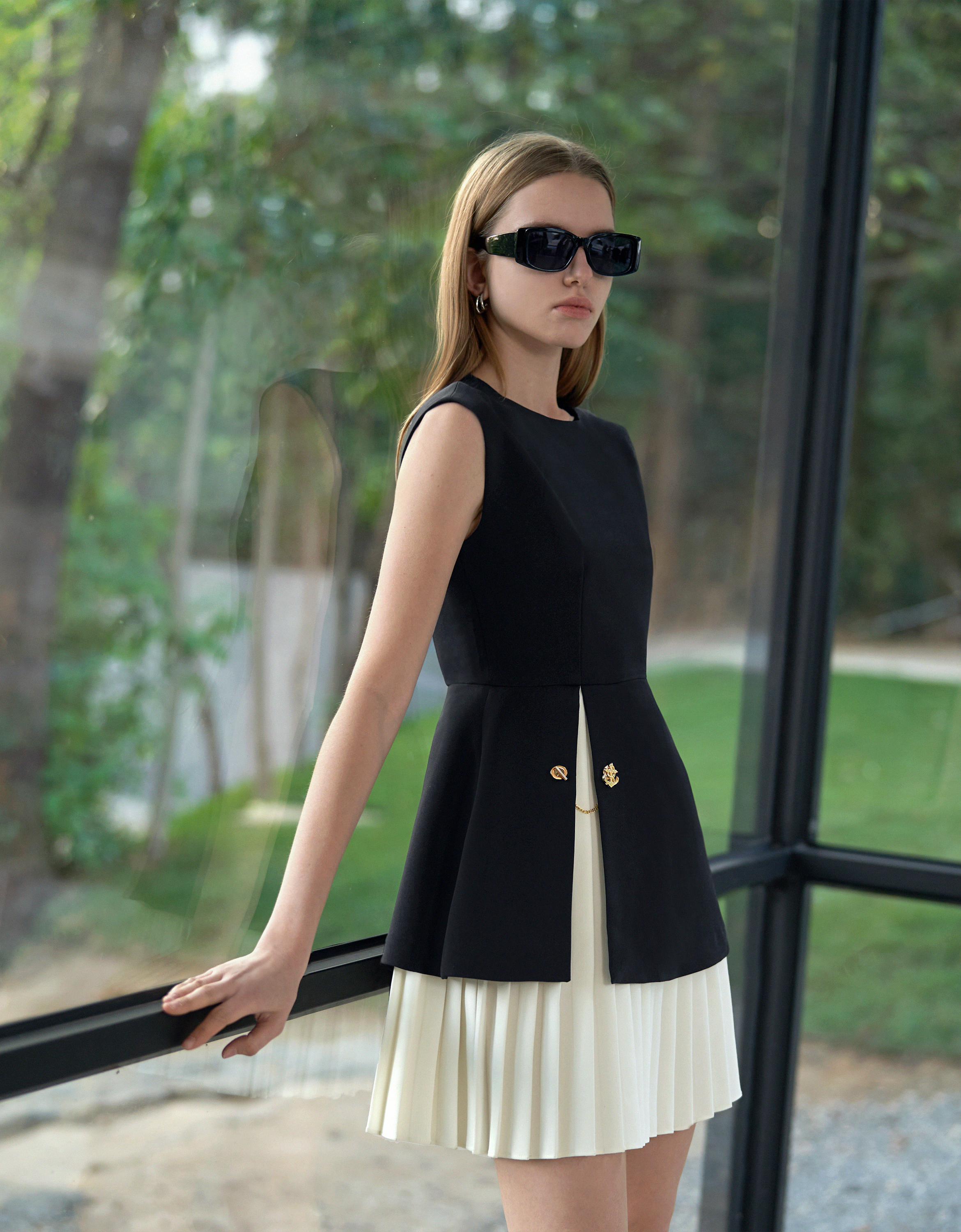 - Contrast pleated skirt