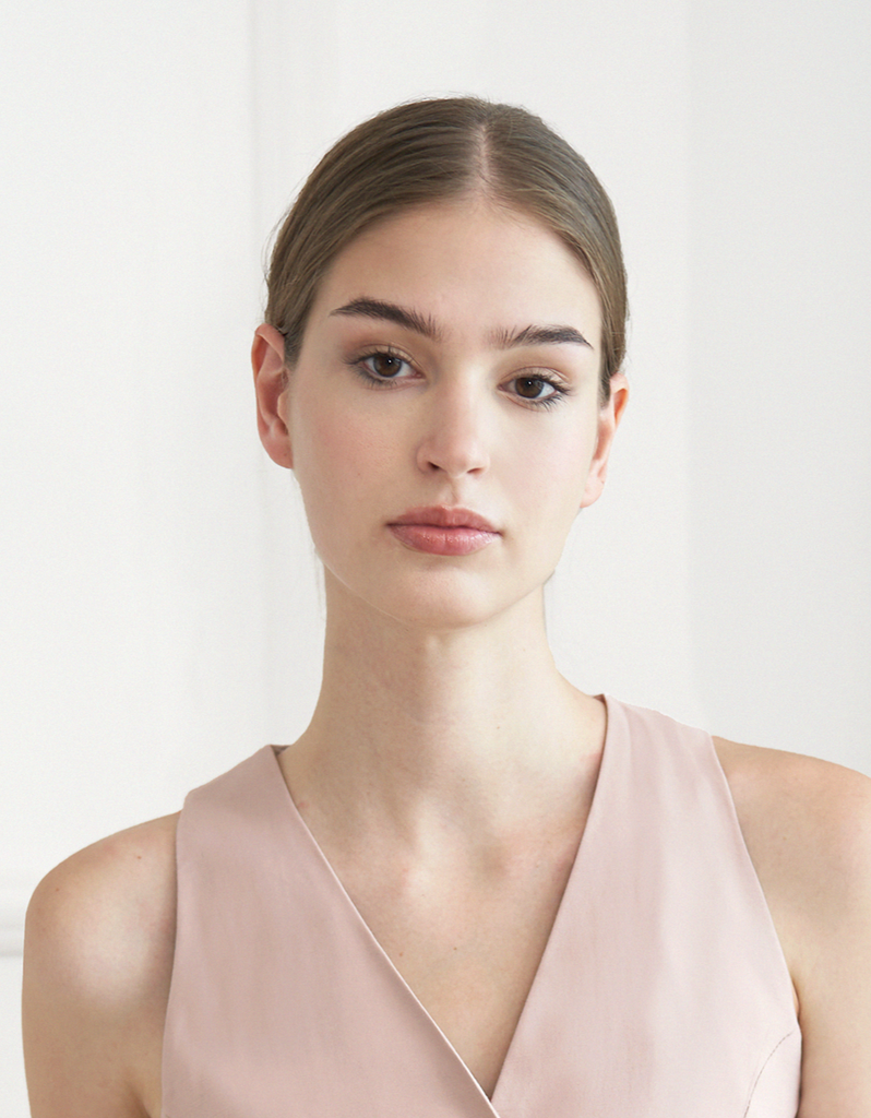- The crisp fabric drapes beautifully for a polished look, while asymmetrical pleats add layered dimension and a graceful sense of movement- A sleek blazer-style collar adds a sophisticated, formal touch to the sleeveless design